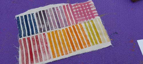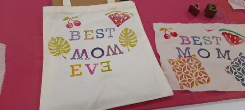 This is an in depth workshop that begins with a thorough demonstration to equip you with the skills needed to print a variety of items. You will spend some time picking your blocks, choosing colours and creating designs on test fabrics until you feel happy. Once you are confident, you will then go on to print on tags, cards, tissue paper and gift wrap and the latter part of the workshop will be spent printing the following: