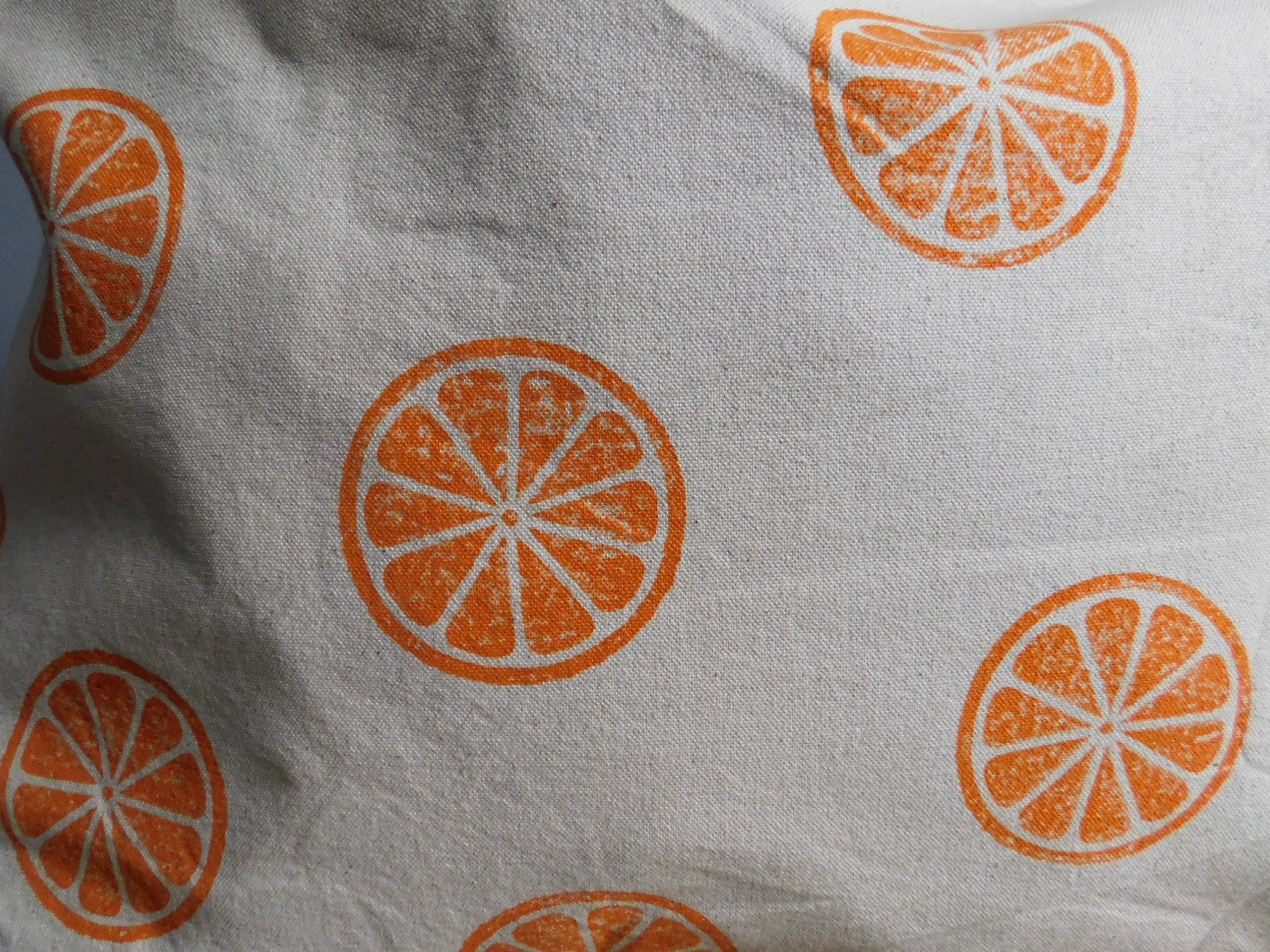 My maker has printed me with a big bold woodblocks of oranges and lemons to create my striking pattern.